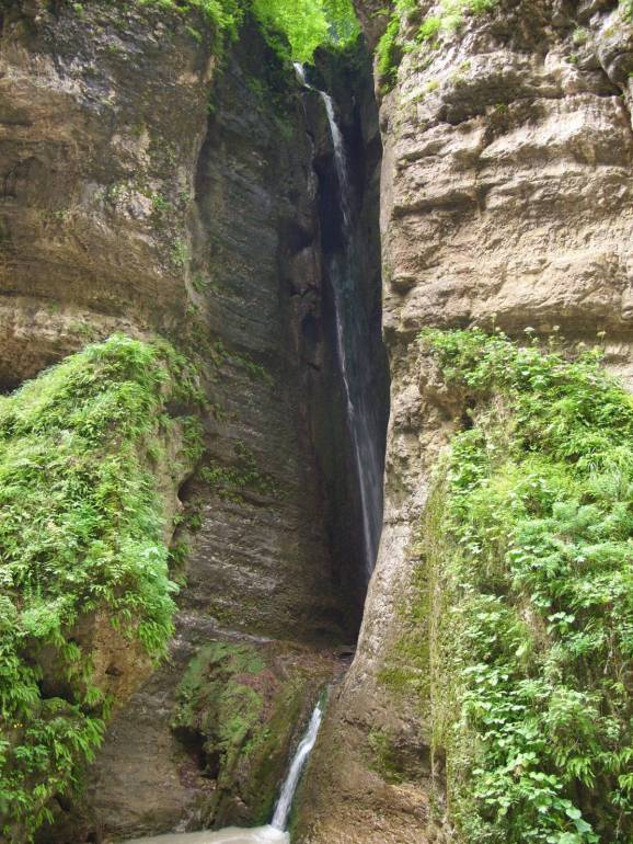 Второй водопад называется Сакал-Туп – он похож на огромный желоб, по которому непрекращающимся потоком падают вниз сотни литров ледяной воды. Немного южнее от него расположен Главный Чегемский водопад, который еще именуют «плачущим». Струйки воды, проникающие через десятки трещин в породе, вырываются наружу, подобно слезам.