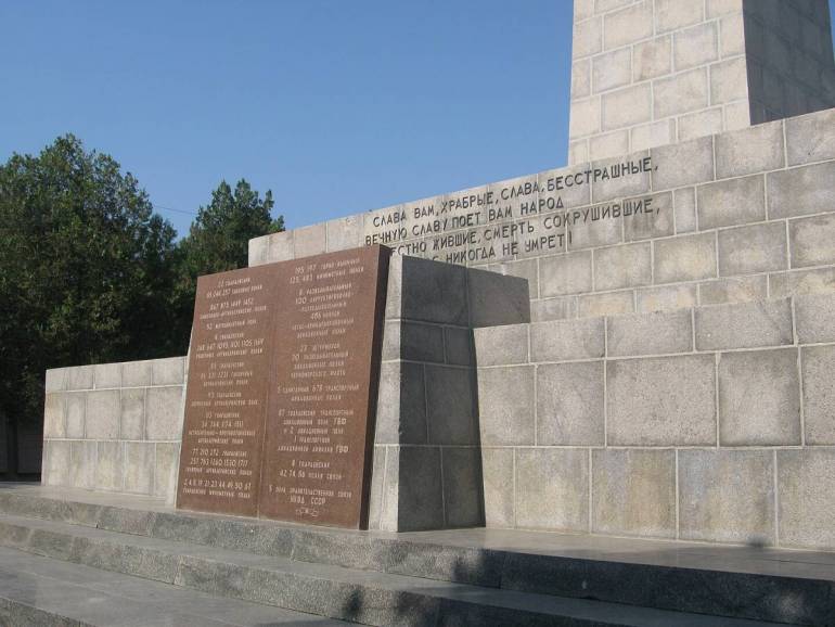 По завершении ВОВ был возведен памятный обелиск Славы. Для его возведения применялись подручные материалы, да и конкретного проекта разработано не было, все работы были выполнены внезапно и быстро. Обелиск в 1964 году покрыли гранитным камнем, а в 1970 на нем появились мемориальные таблички с названиями частей Советского Флота и Армии.