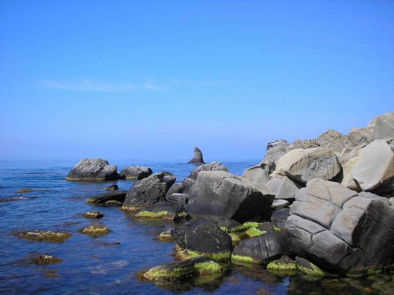 Почему-то очень часто, когда говорят «Мы отдыхали на Меганоме», имеют в виду пляж в самом начале мыса, в районе поселка Капсель, до которого легко доехать на автомобиле. Честно — самый обычный пляж. И я очень понимаю разочарование людей, которые что-то слышали о Меганоме как о месте силы, как о чём-то особенном а приезжают на обычный пляж.