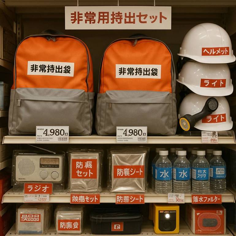 Есть и бытовые детали: в японских магазинах можно купить готовые наборы выживания в рюкзаках. В них, помимо базового набора — воды, пайков, аптечки и фонарика, — лежат одноразовые туалеты, свисток для подачи сигнала и даже специальные печенья, которые сохраняют свежесть пять лет