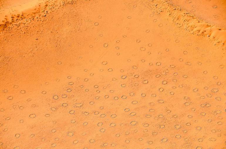 И вот именно в этой узкой полосе между горячим песком и холодным океаном появляются те самые «круги фей». Пустые участки от метра до нескольких десятков метров, окружённые кольцом травы. Настолько аккуратные, что напоминают отпечатки огромных формочек для печенья.