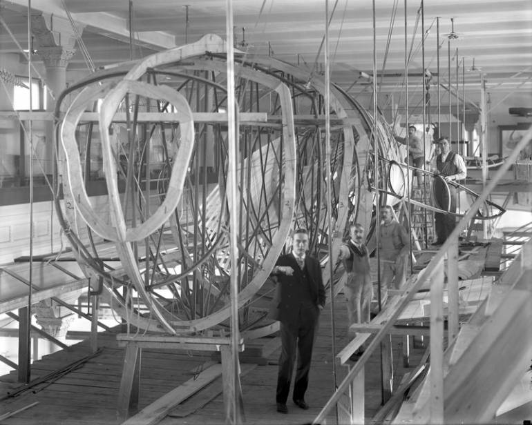 Рой Чепмен Эндрюс (на переднем плане) возле каркаса будущей модели кита, 1907